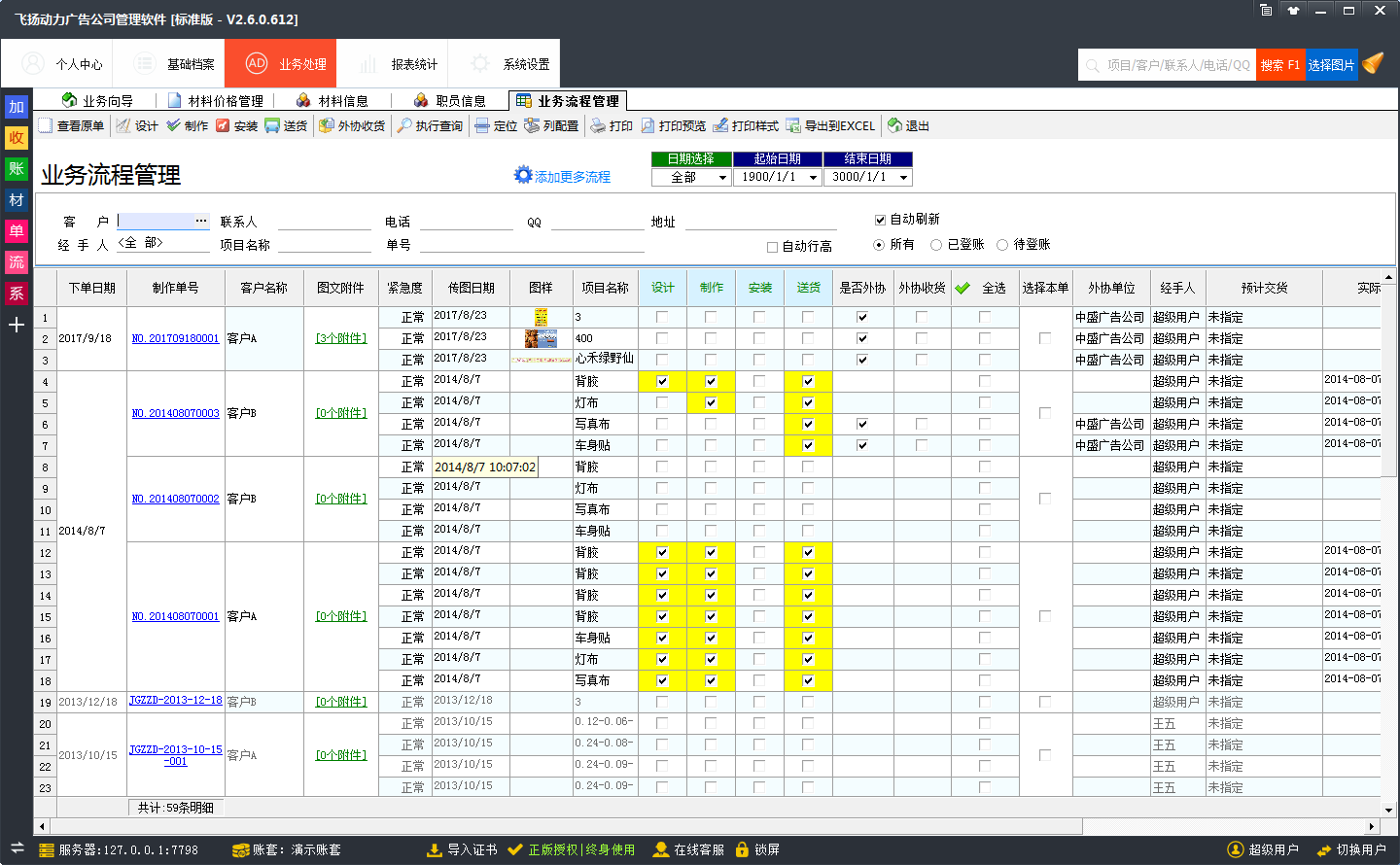 飛揚動力專注于開發(fā)廣告公司管理軟件,飛揚動力廣告公司理軟件適用于噴繪寫真條幅制作等所有廣告行業(yè)公司。