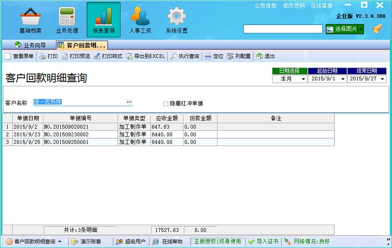 在廣告公司管理系統(tǒng)中,與客戶對賬可以分為按明細對賬和按單據(jù)對賬。按照明細對賬,就在業(yè)務處理中,打開往來對賬,選擇客戶與日期,軟件會自動把客戶在改日期內(nèi)的嗦有單據(jù)都顯示出來,并且包括單據(jù)的總應收金額與單據(jù)的具體明細