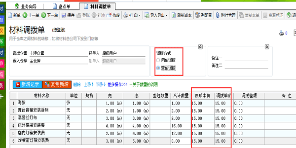 就可以在原來(lái)成本價(jià)格的后面,直接填寫上調(diào)撥的單價(jià)。方便進(jìn)行出庫(kù)管理的
