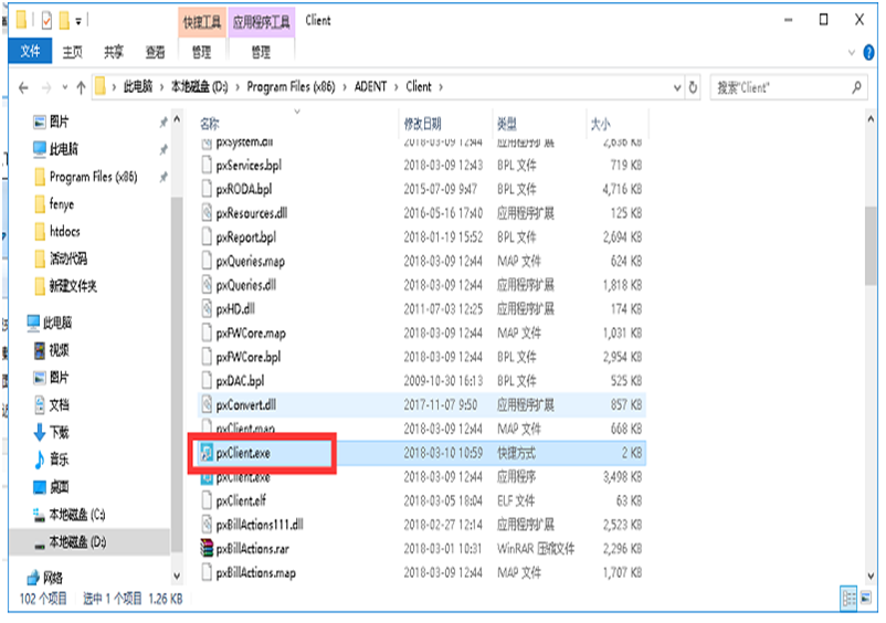 然后在路徑為D:\Program Files(x86)\ADSTART\Client的文件夾下,找到pxClient.exe這個(gè)文件,創(chuàng)建一個(gè)快捷方式,并放到系統(tǒng)桌面,如下圖所示: